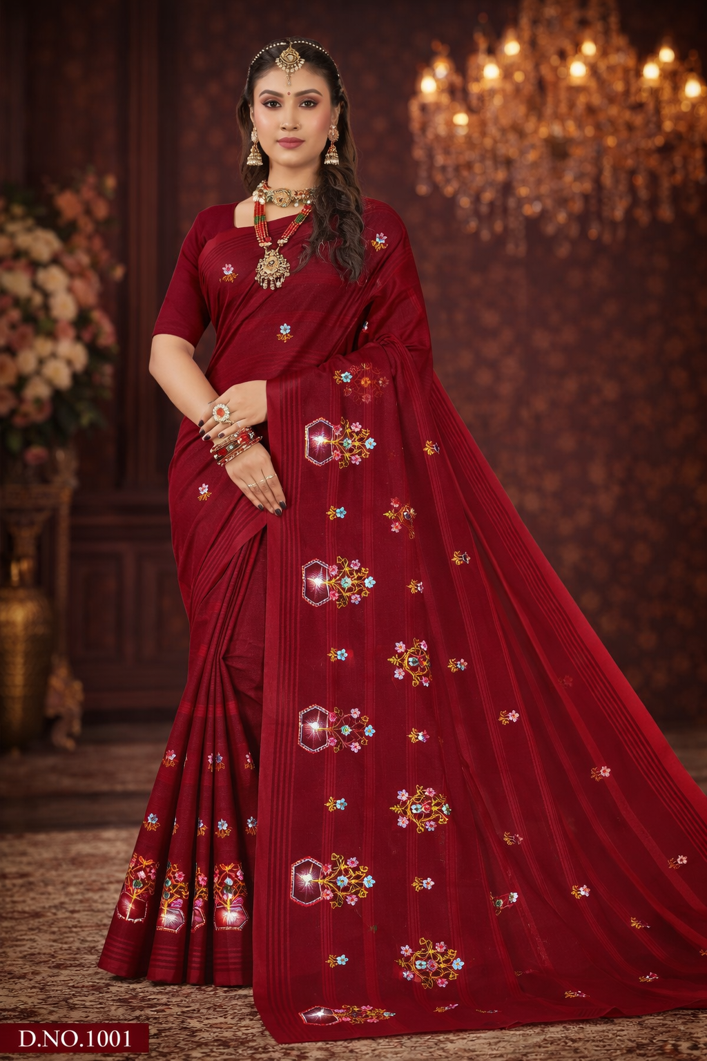 Crafted from premium quality fabric, it offers a soft texture, lightweight feel, and comfortable drape for all-day wear. The detailed embroidery enhances the richness of the saree, making it ideal for festive occasions, family functions, office events, and casual gatherings.
